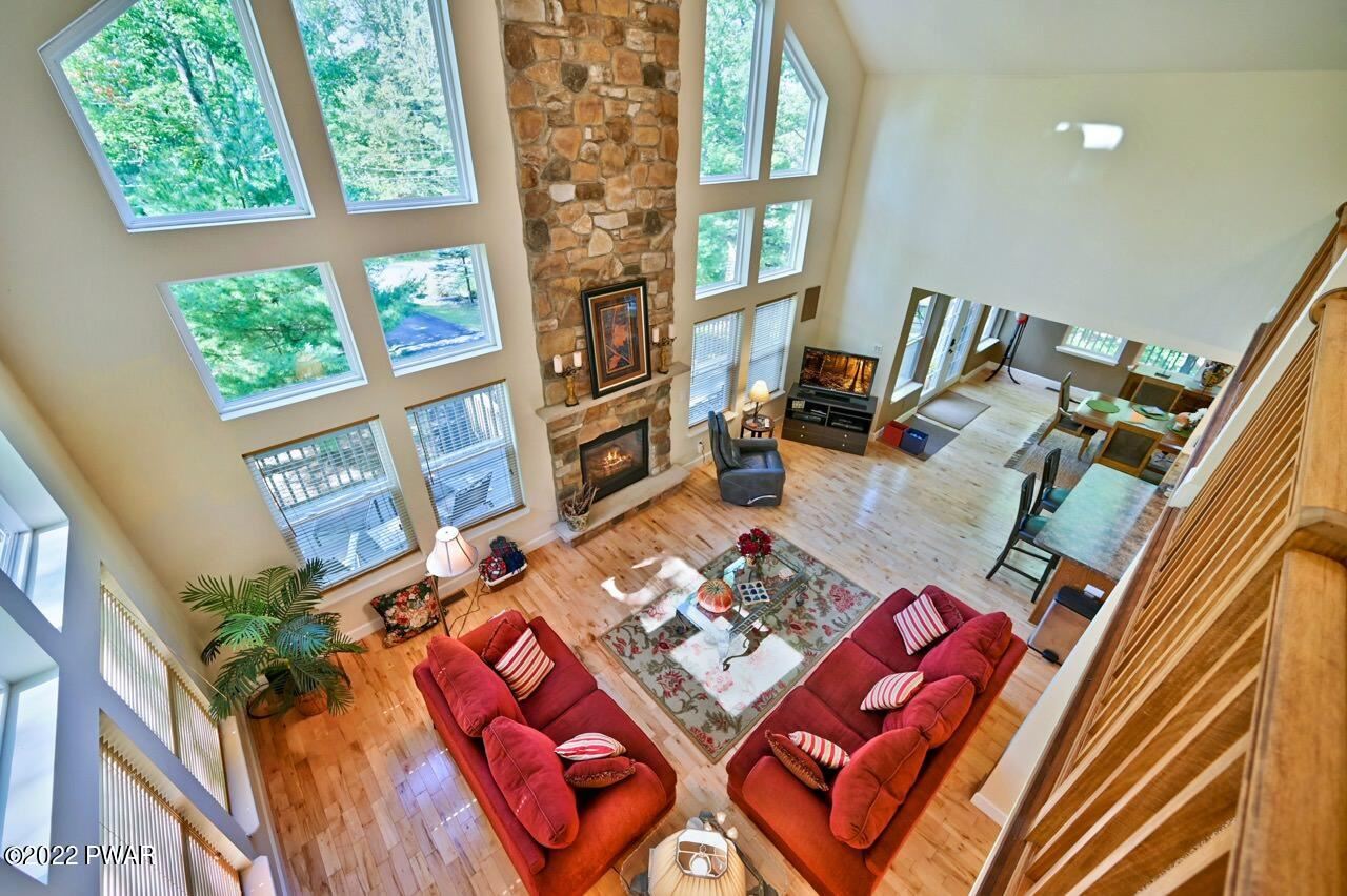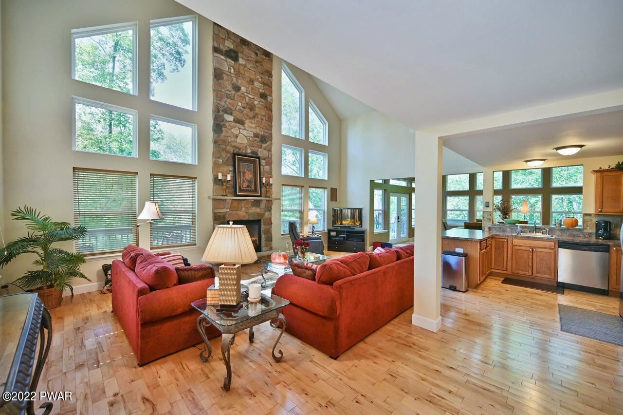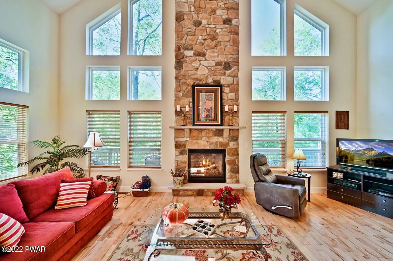 Beautiful Masthope Mountain Chalet Being Sold TURNKEY! Nothing to do but pack a suitcase and move right in. Meticulously maintained home features 4BD/3.5BA, 2 suites w/ WIC, new hot water heater, massive overlook loft, hardwood floors, SS appliances, tile backsplash, finished lower level, great space for entertaining, wrap around deck, paved driveway, beautiful professionally landscaped yard, gutter guards, cathedral ceilings, open floor plan, floor to ceiling stone fireplace and 1 car garage with built in storage cabinets. Many added extras throughout home.