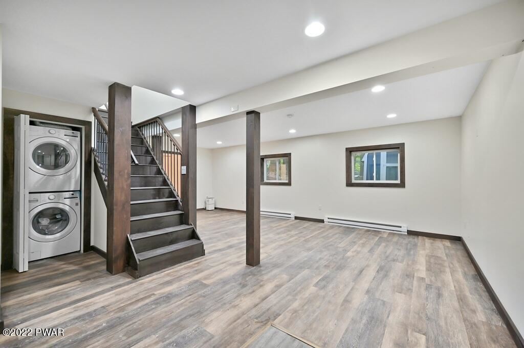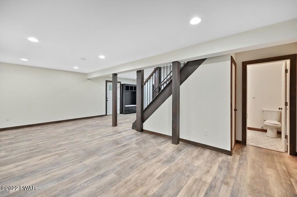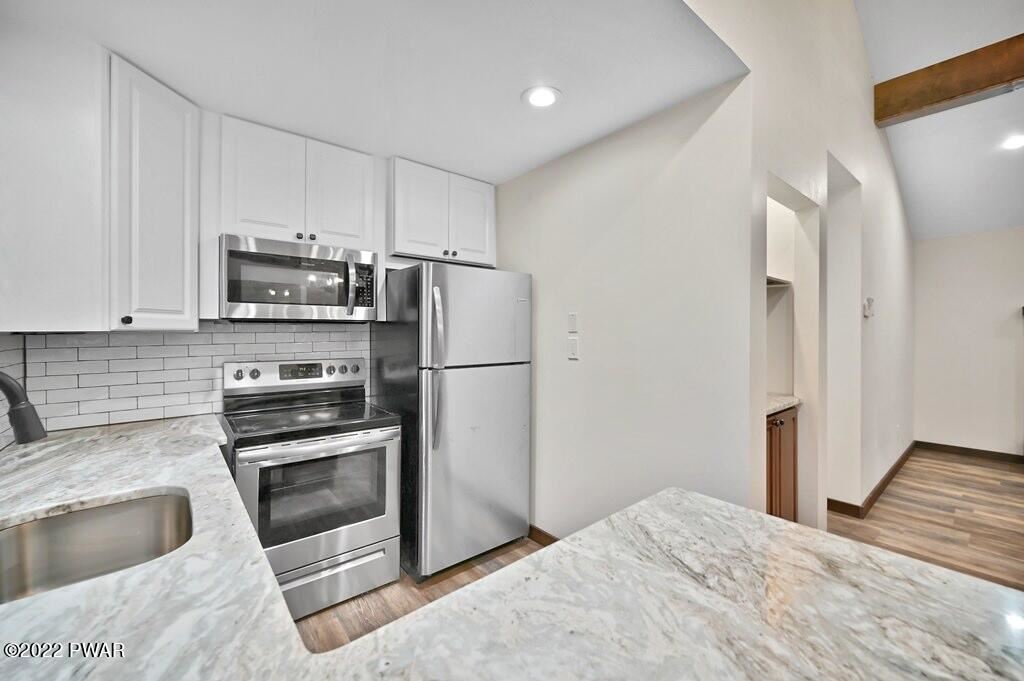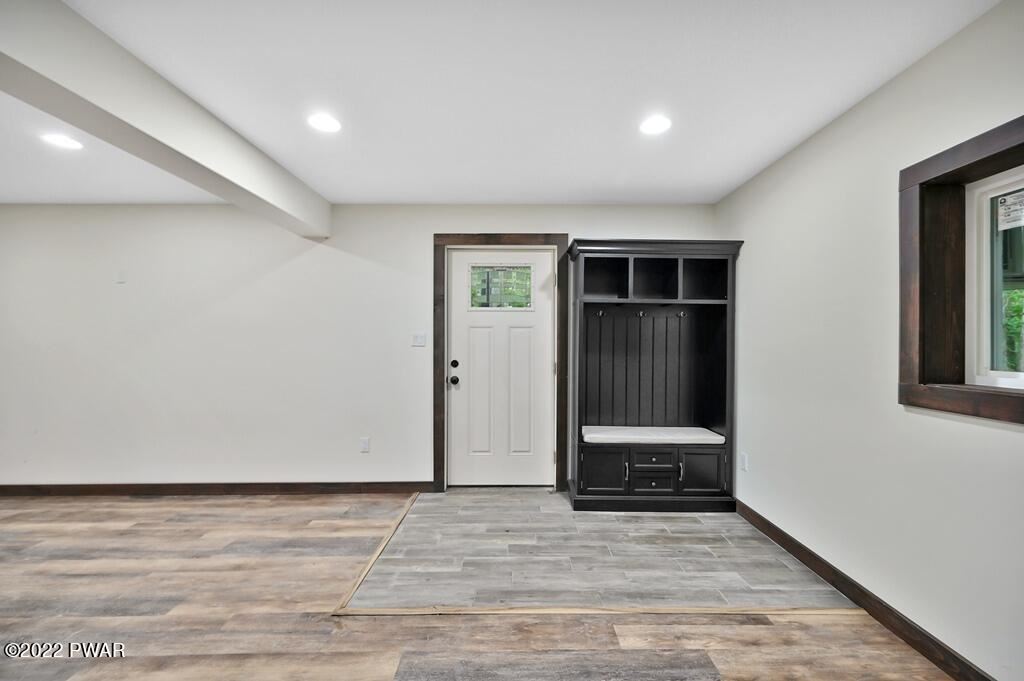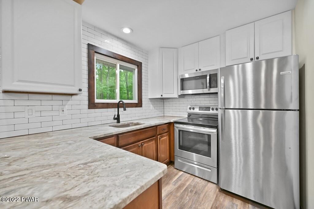 Completely renovated Masthope raised ranch! Very private setting, house backs up to greenbelt and surrounded by Masthope owned land on both sides! Be the first to enjoy this revived beauty! NEW: roof, siding, gutters, windows, AC split, heating, drywall/paint, kitchen, SS appliances, lighting throughout, interior and exterior doors, custom trim, life proof flooring, bathrooms with custom tile work and unique hexagon floors adds tons of contemporary style. 3 bedrooms, bathroom, kitchen and living upstairs. 2 bonus rooms in lower level, additional living, bathroom and brand-new LG washer/dryer. Custom built in bar and whitewashed fireplace for entertaining and cozy nights viewing your private backyard. Large, covered back porch and massive paved driveway w plenty of parking.